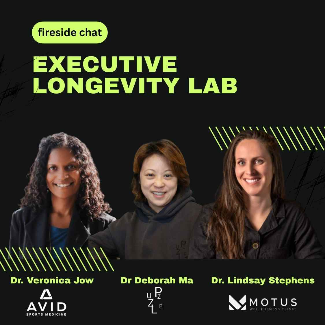 With thanks to Dr. Lindsay Stephens of Motus Wellfulness Clinic and Dr. Veronica Jow of Avid Sports Medicine, who shared the panel at our Executive Longevity Lab on April 22, 2026.